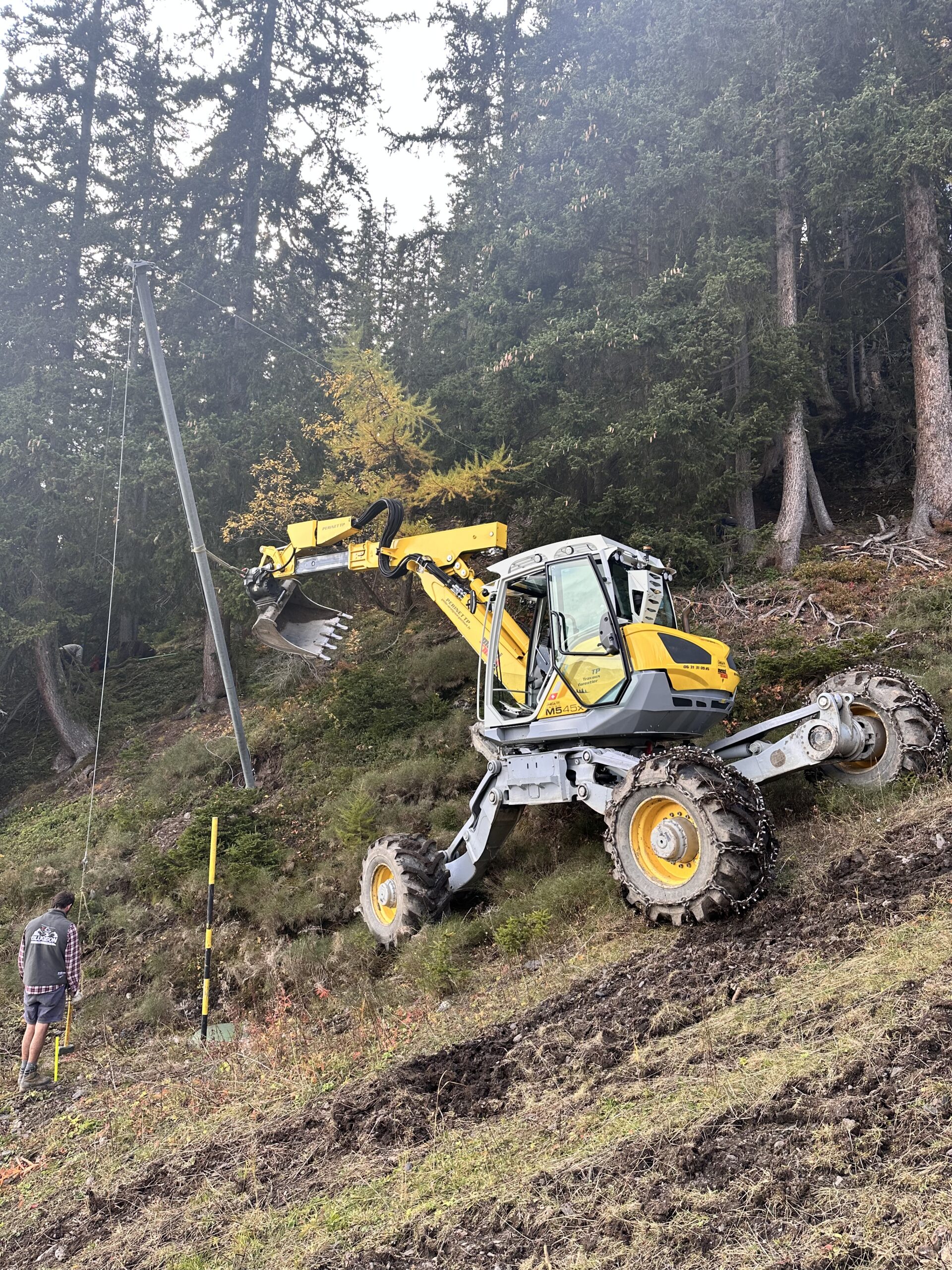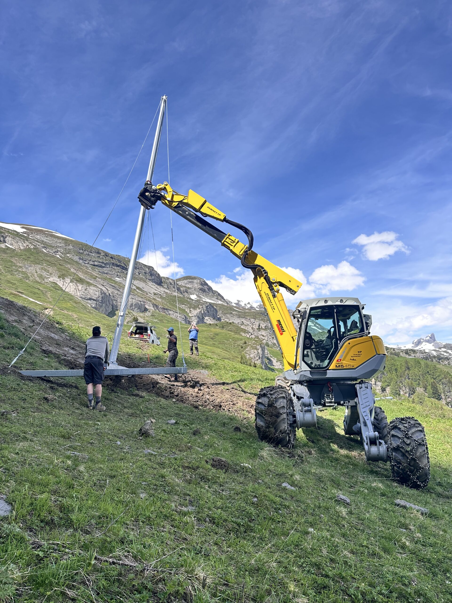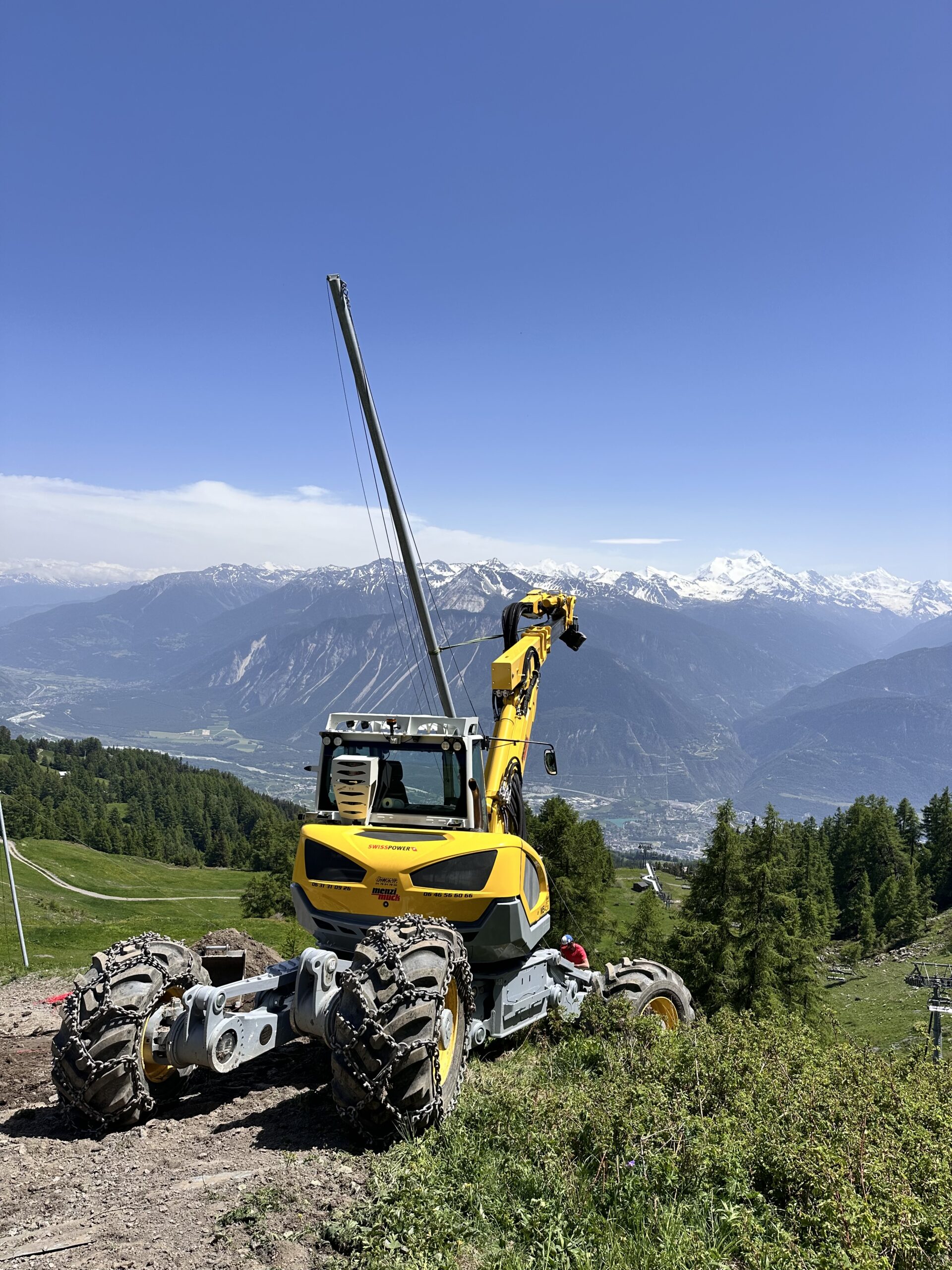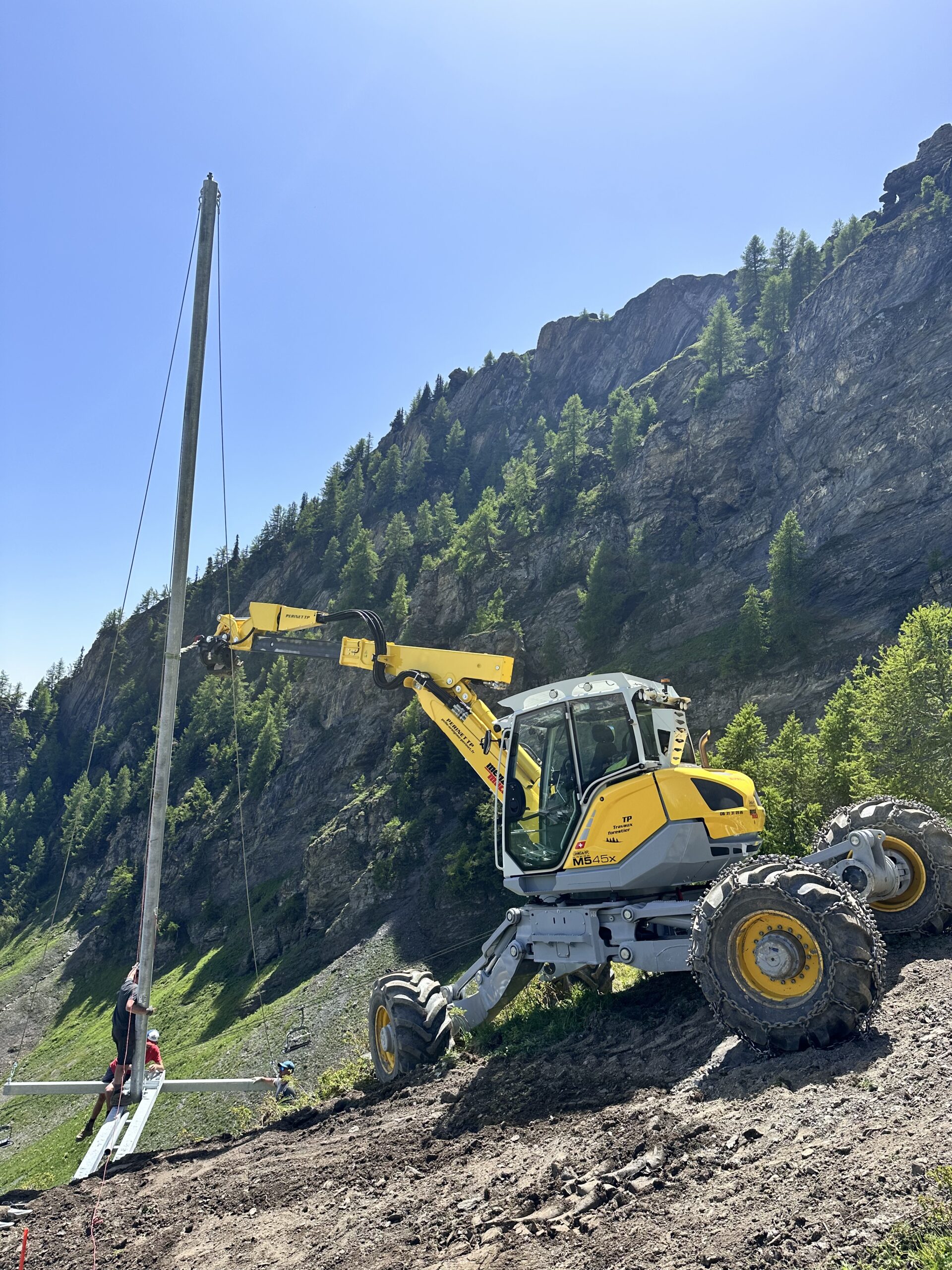 Pendant deux mois, notre équipe est intervenue sur un chantier d’envergure dans le canton du Valais, en Suisse. L’objectif : installer des mâts métalliques destinés à supporter des filets de protection, indispensables à la sécurisation des pistes lors des compétitions de ski hivernales.